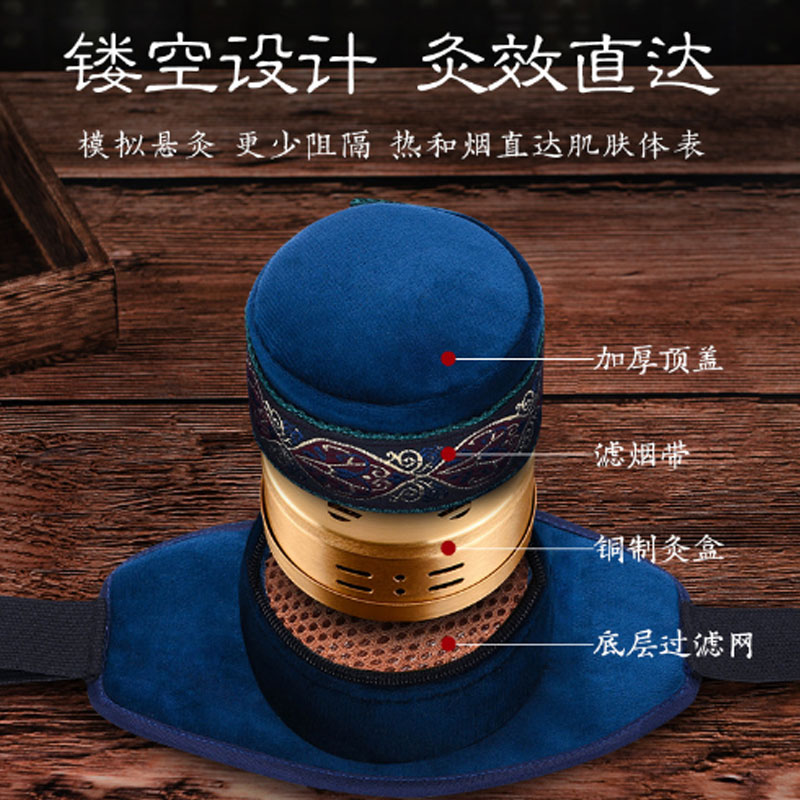 Pure copper hollowed-out moxibustion box with moxibustion for home smoke-proof bag cloth cover cervical spine Waist Belly Moxibustion Instrument Suspended Acupuncture Bag-Taobao