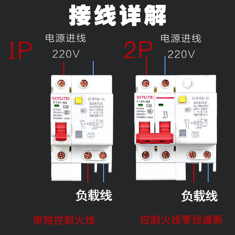 Teddler leakage switch DZ47LE2P63A air switch with leakage protector open circuit breaker C45