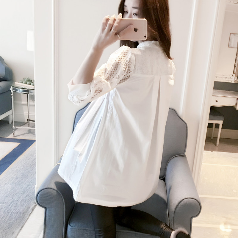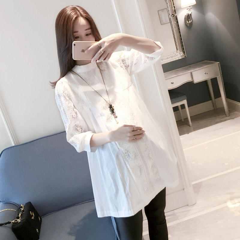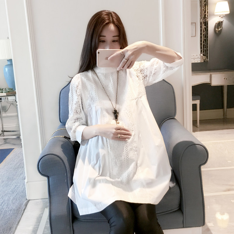 Pregnant women's shirt autumn mid-length white doll shirt pregnant women's top loose Korean version large size maternity shirt summer