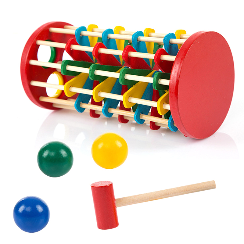 Children fall ladders Knocks 1-2-3-year-old hammers knocks on toys Early education Puzzle Wooden Knock Swivel Piling