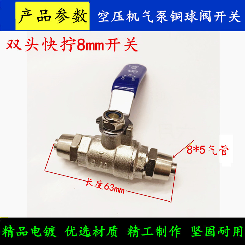 Quick screw ball valve switch Air compressor air pump Pneumatic quick joint Copper ball valve deflation valve 2 minutes 6mm8m trachea
