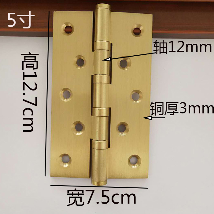 Pure copper hinge hinge wooden door cabinet bearing folding page thickened antique hardware accessories all copper flat open luxury loose-leaf