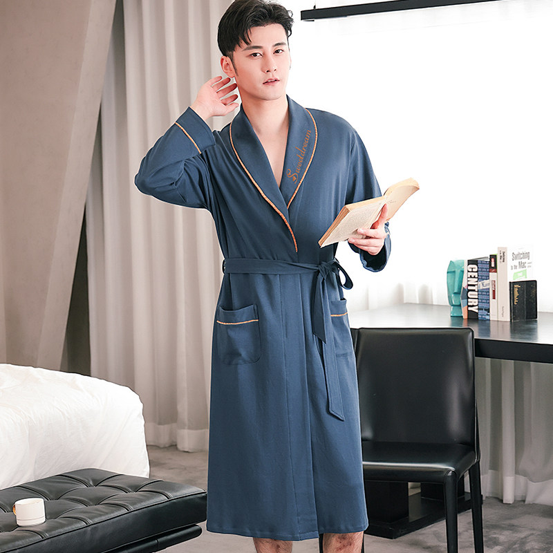 Sleeping Robe Women's Summer Thin Section Couple Cotton Sleepwear Male Bath Clothes Spring Autumn Summer Sleeping Skirts Men's New Pure Cotton Bathrobe Men