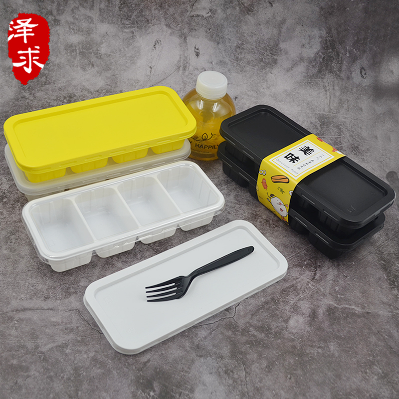 Packaging Box Food Grade Four-Grid Lunch Box Mesh Red Disposable Meal Kit Rectangular Trig-Fit External Delivery Snack Box