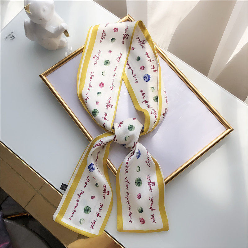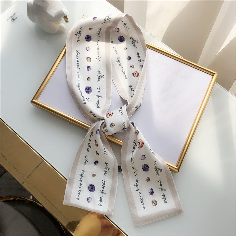Trendy spring and autumn small silk scarf women's decoration Korean long scarf ins wild Korean version of the narrow spring tie scarf