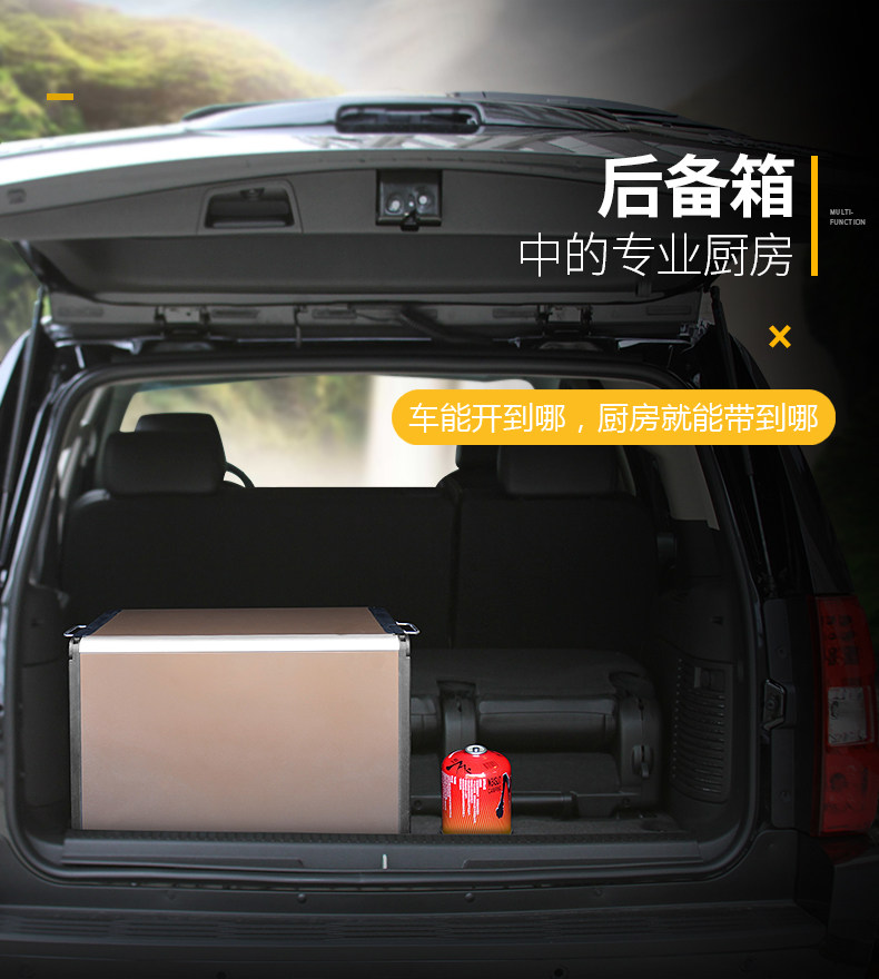 Outdoor self-driving tour RV portable mobile car gas stove box camping picnic folding cookware equipment