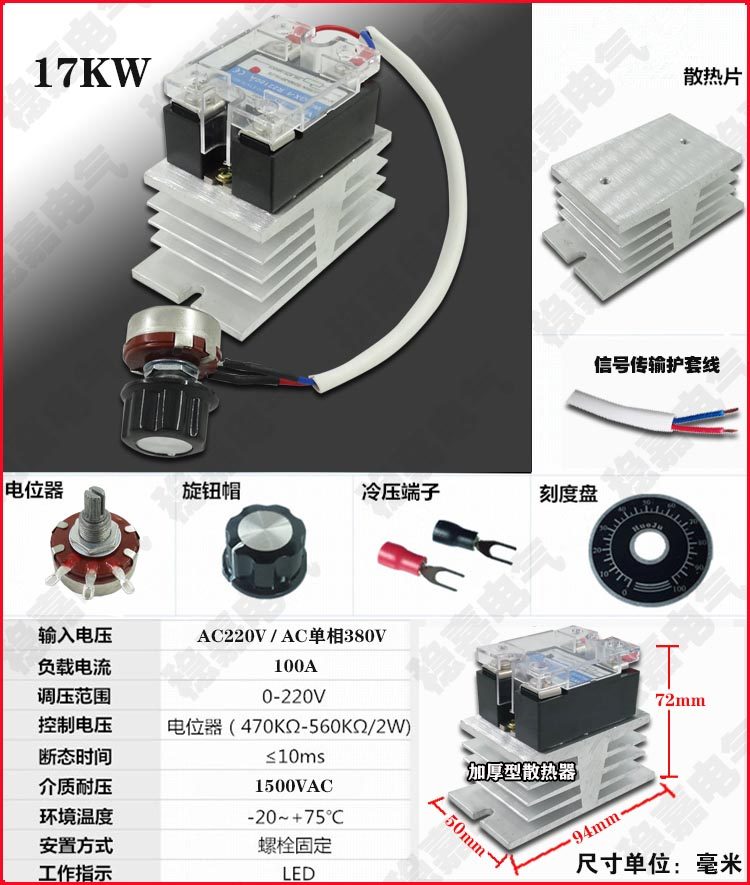 17KW high power AC 220V blower AC motor speed control temperature control dimming 0-220V governor switch