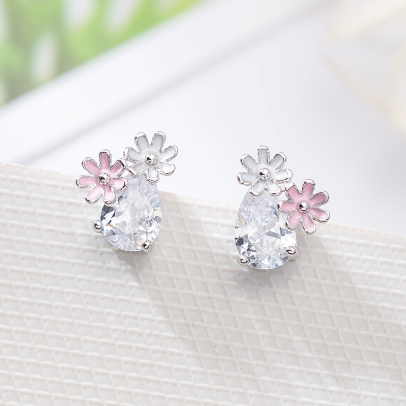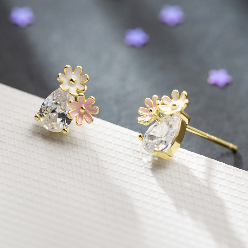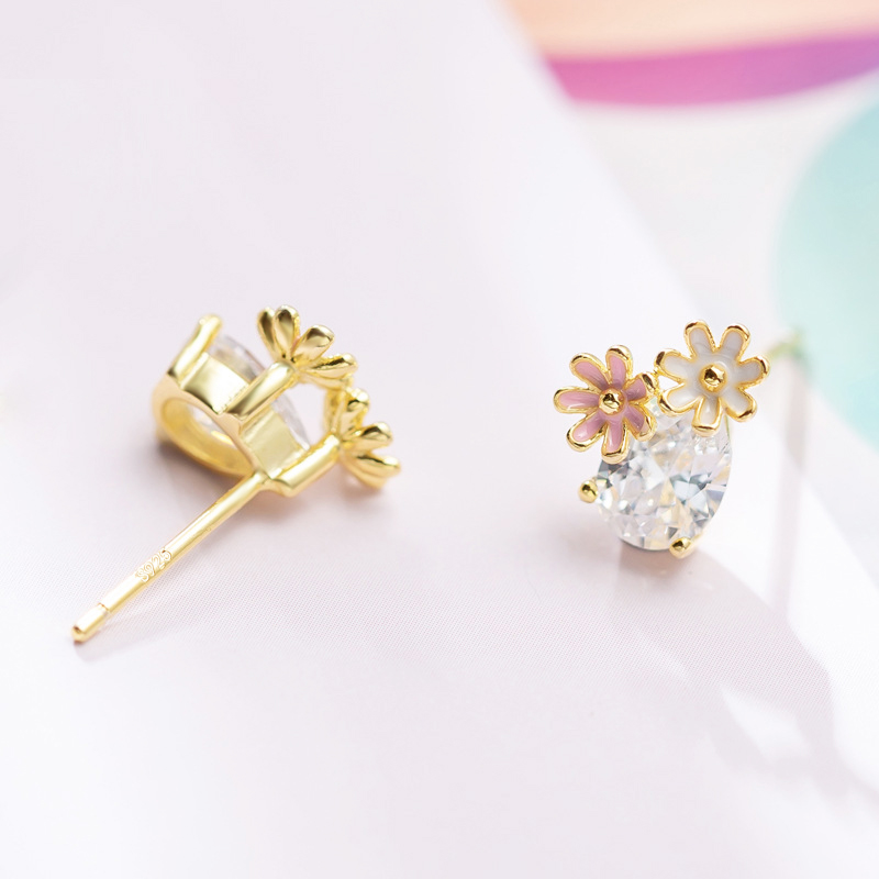 Two - color daisies drop ear needle Korea 925 pure silver flower ear decoration girls net red in 2019 new simple