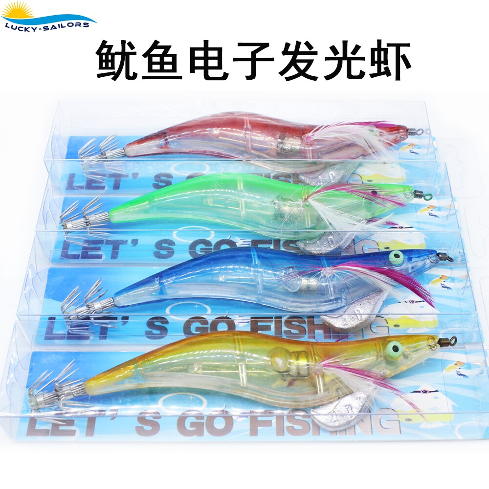 Luminous electronic shrimp into water bright out of water Squid Hook Octopus Hook Luminous Lujah False Bait Button Battery Gear-Taobao