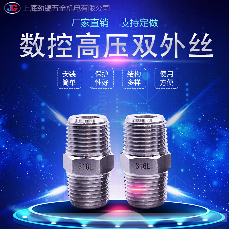 304 stainless steel high pressure double outer wire ZG hexagon double male screw CNC thickening and reducing short cylindrical PT reducing straight through