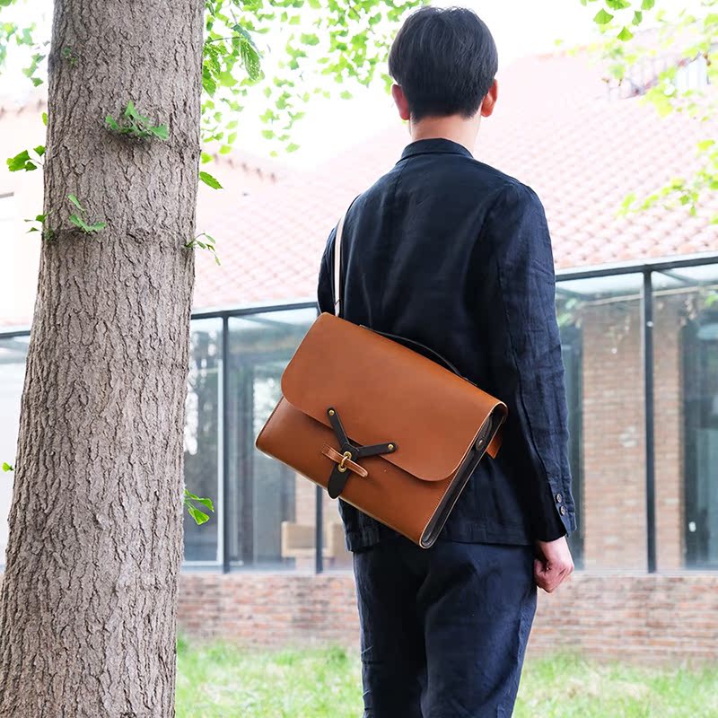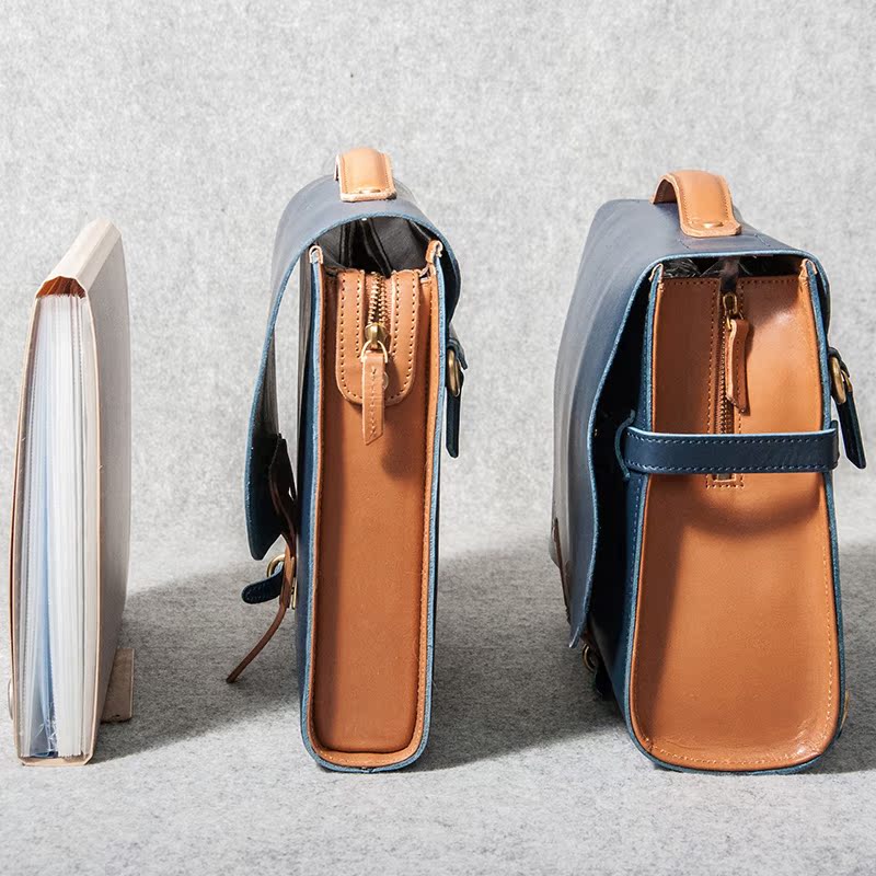 Lewhisper Designer Series 14 Inch Slim Version Cow Leather A4 Business Briefcase Commuter Mailbag Skew Satchel