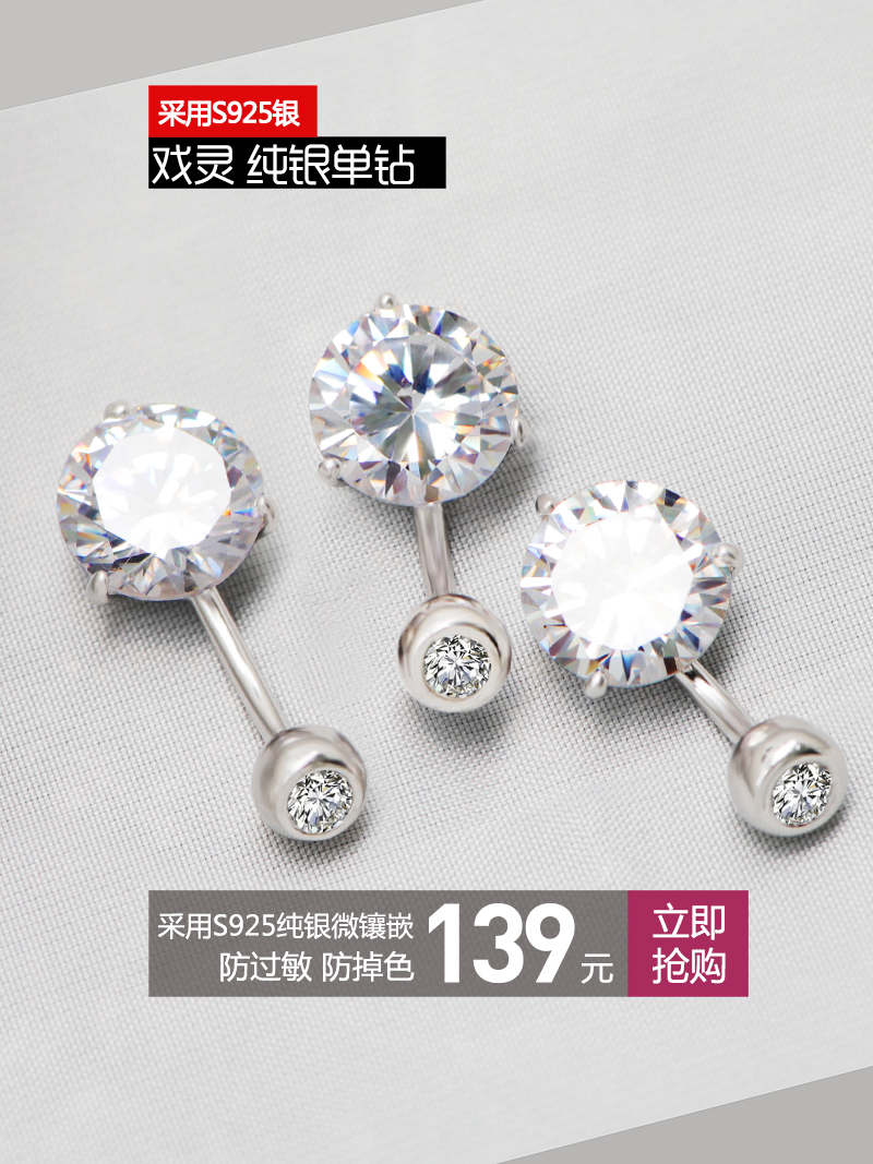 Drama original 925 sterling silver navel nail allergy Europe and America Sexy goddess umbilical ring female navel nail jewelry