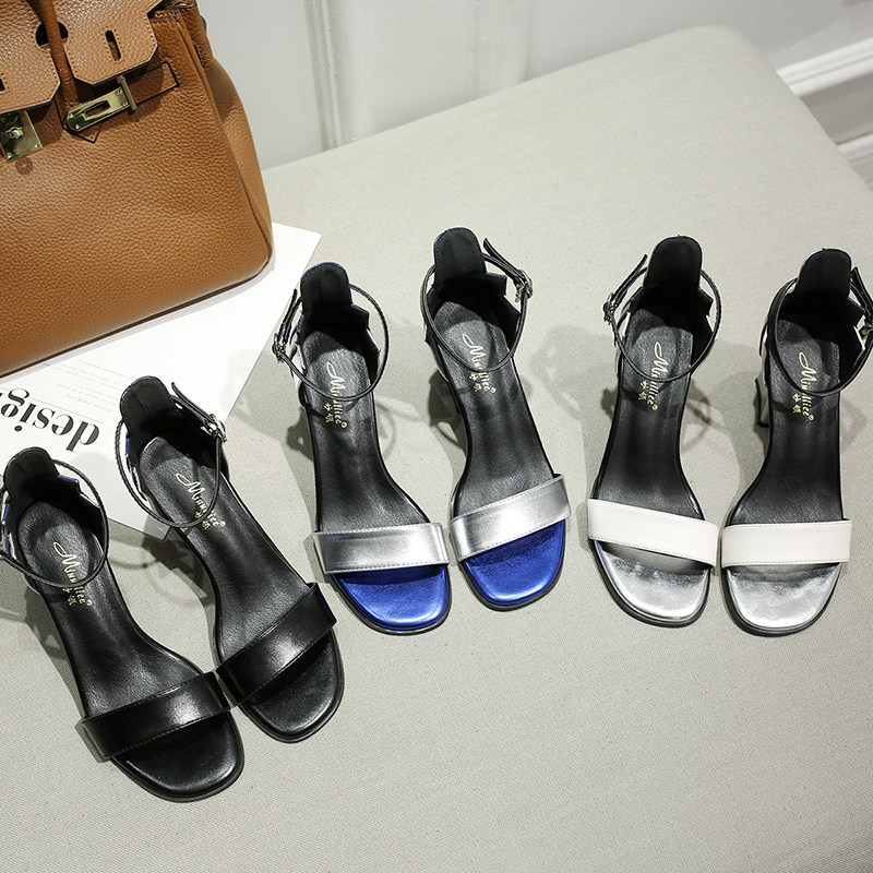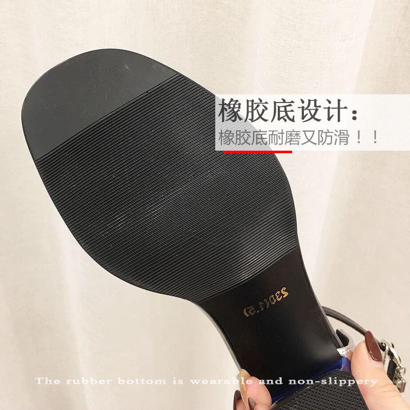 One word with coarse heel sandals female fairy Wind 2022 new women's Charins Chains with 100 hitchhiking heels
