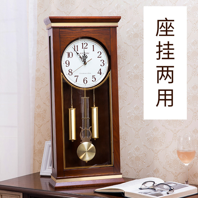 New Chinese classical chime solid wood wall clock Japan Seiko old-fashioned Chinese style living room atmospheric clock hanging wall clock