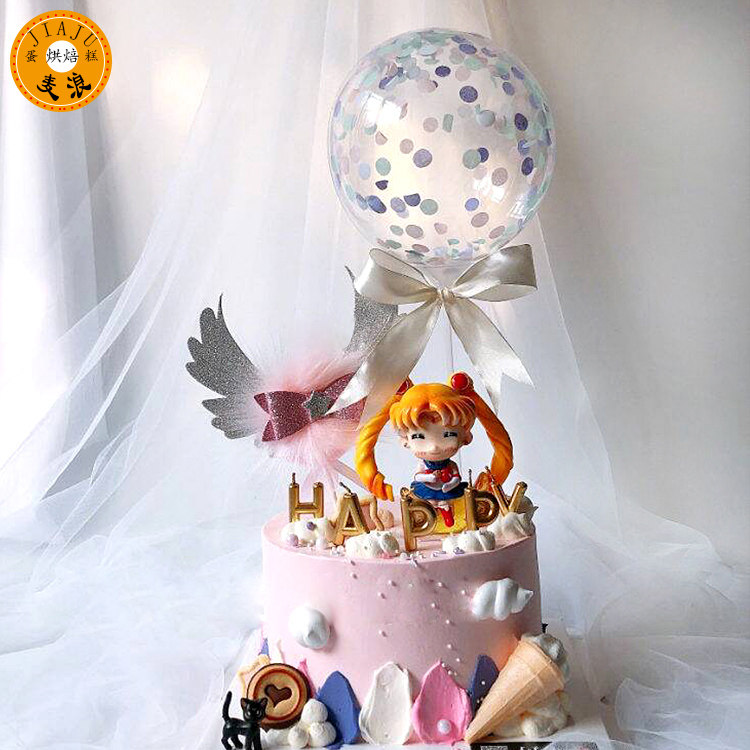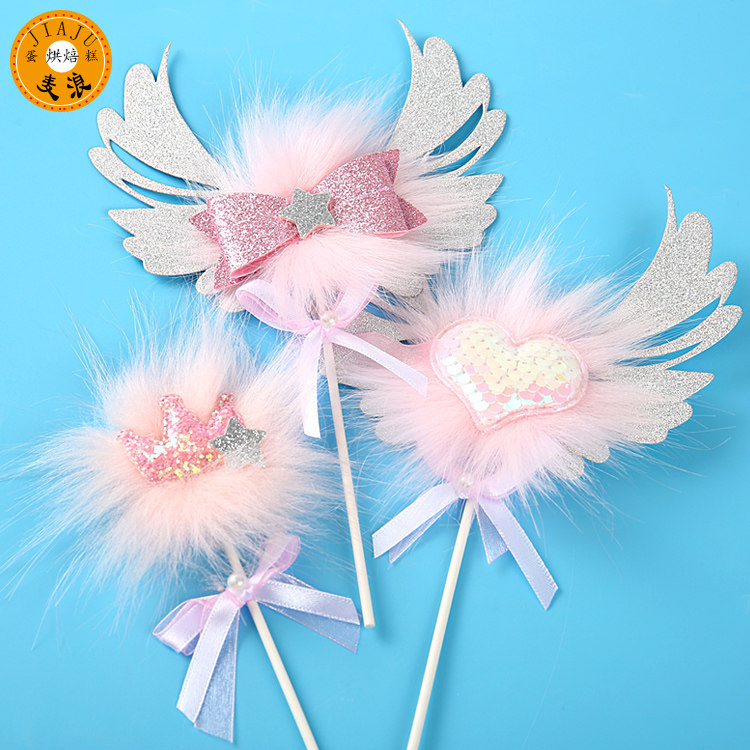 Plush love wings Plush bow wings Plush crown wings moon beautiful girl ornaments ornaments Pink KT A beautiful girl with a base 4-piece set of silver wafer balloons A round pink YKL birthday plug