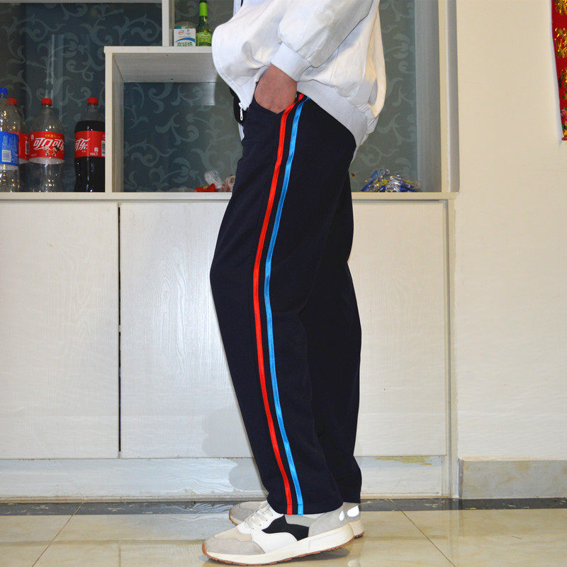 Black School Uniform Pants Red Blue Strips Sport Pants Boys Junior High School High School Schoolgirls Long Pants Spring Summer Tibetan Youth Loose School Pants