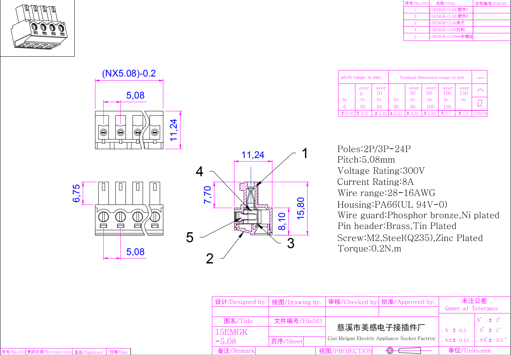 MG KF 15EDGK-5 08-2P 3P Pluggable PCB terminal block Straight needle bending pin