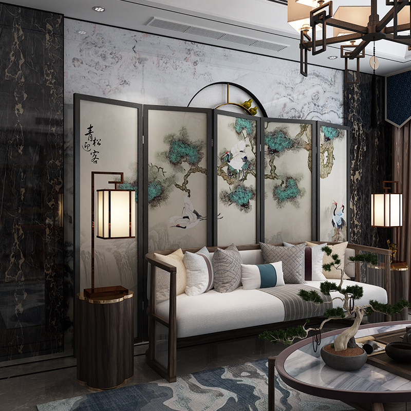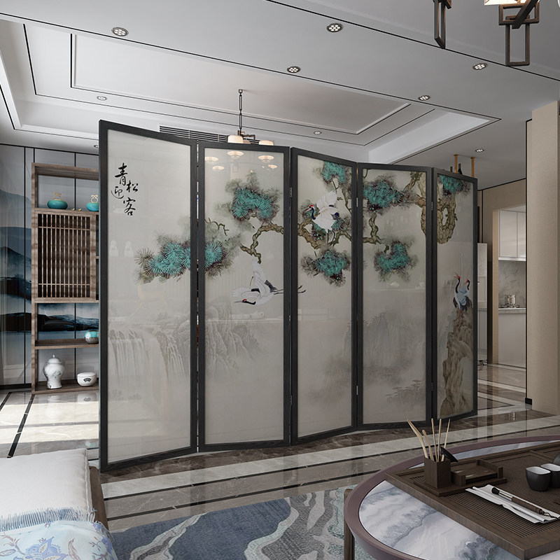 New Chinese-style screen partition welcome guest pine solid wood living room folding screen can be customized modern creative classical georgette
