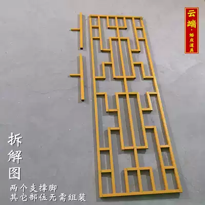 Chinese wedding screen wrought iron wedding props checkered shelf stage background decoration retro ornaments 2019 new