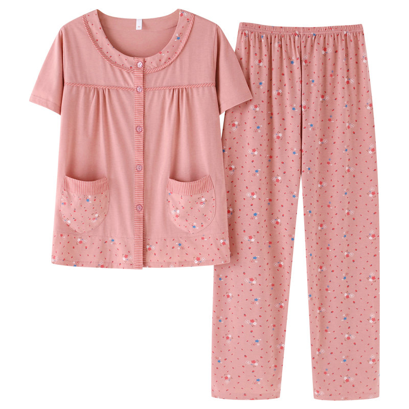 Ms. Pajamas Spring and Summer Pure Cotton Short Lengths Mom Mother Mother's Round Breath and Half-sleeved Middle-Senior Home Clothes