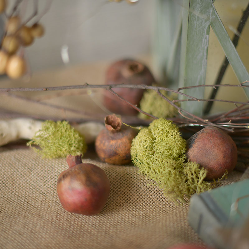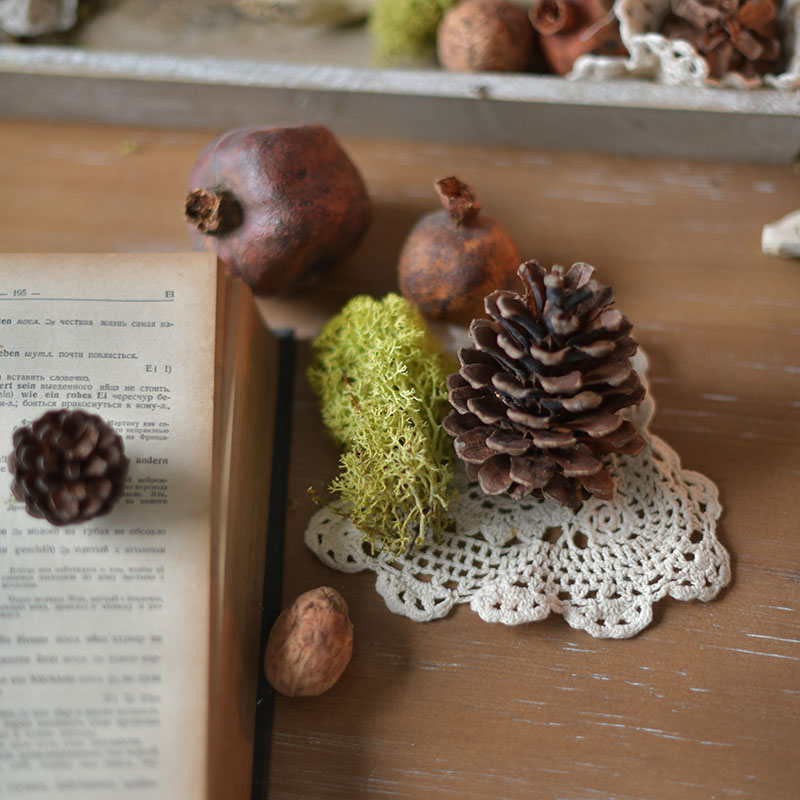 Small experience package wood mango X5 cotton yarn mat driftwood X4 pomegranate x8 large, medium and small pine cones each a small group of moss Large package