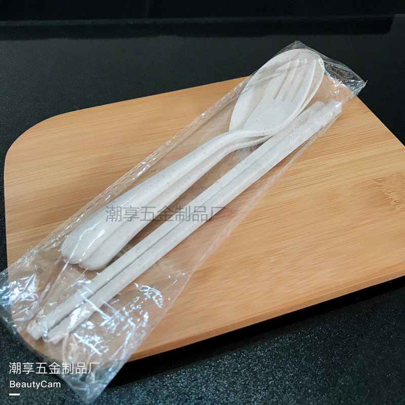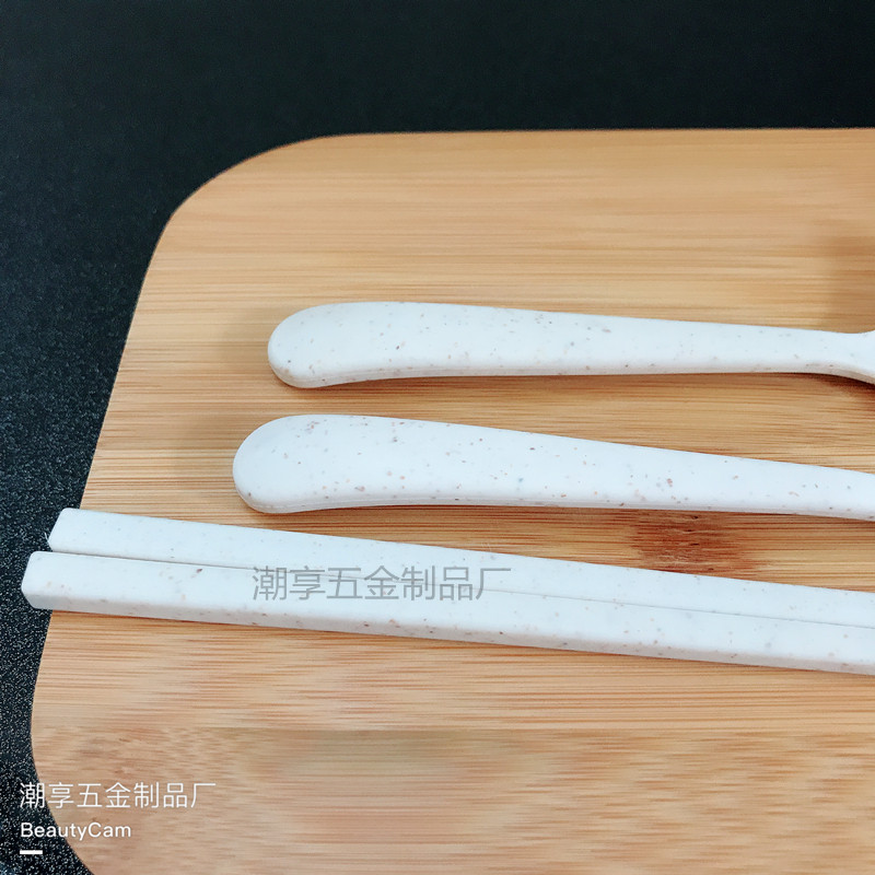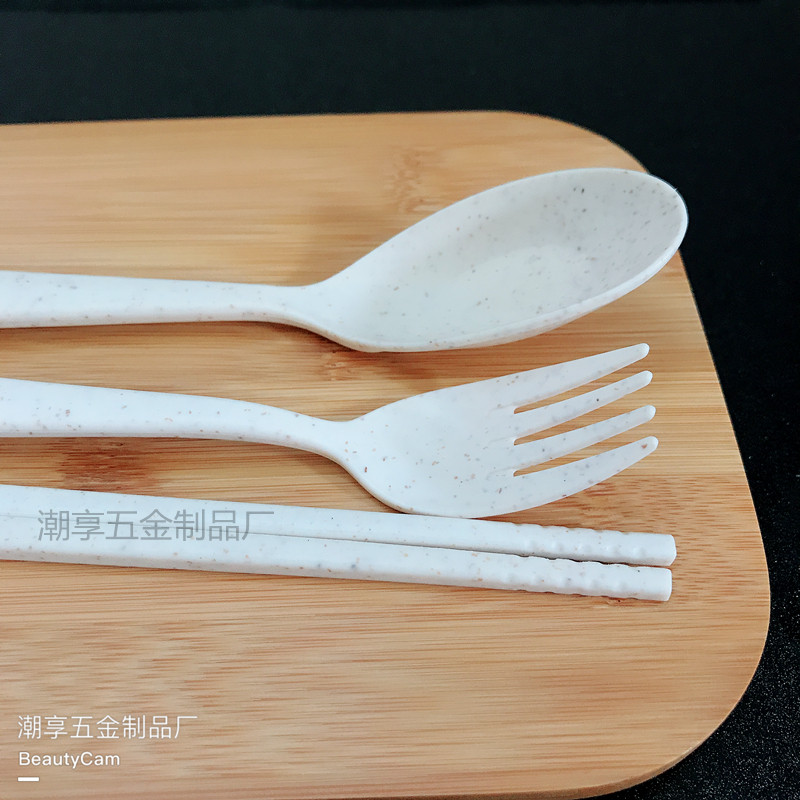 Nordic wheat straw household tableware Dining room student plastic portable spoon fork chopsticks three-piece set gift gift