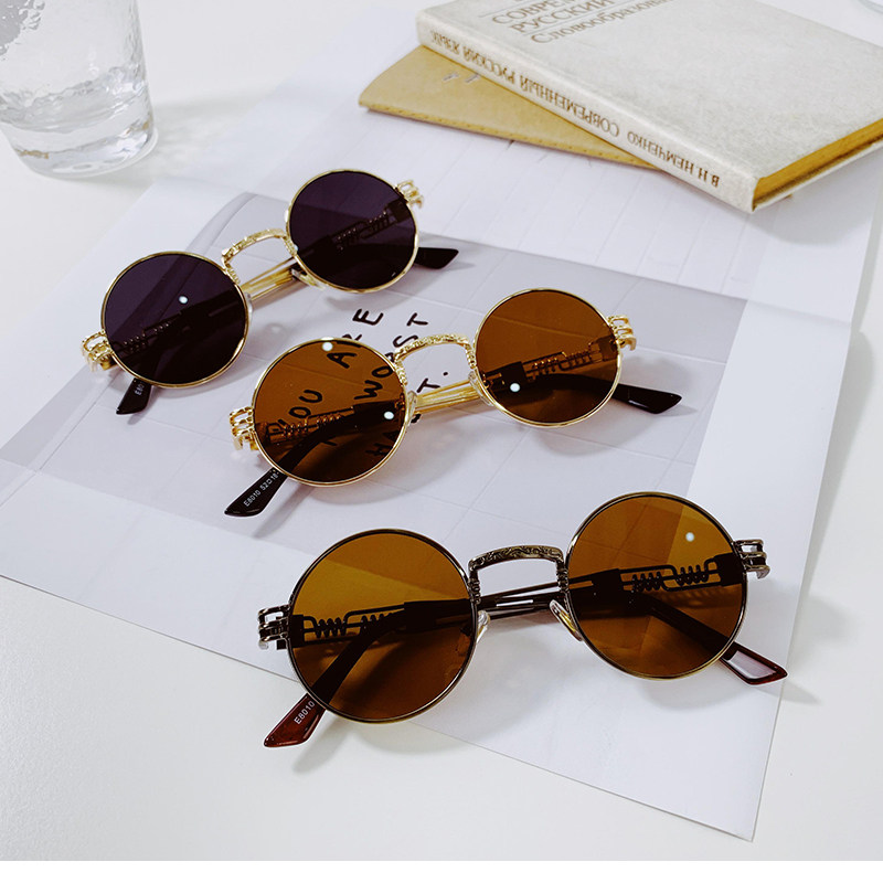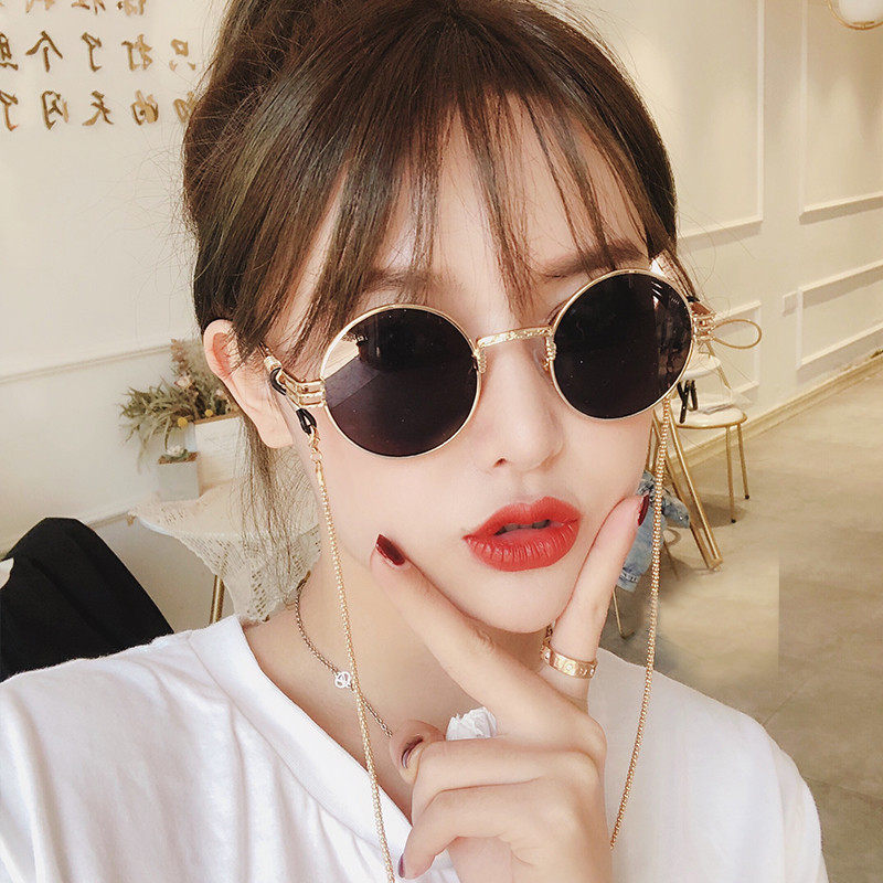 ins retro hip hop tea color round frame sunglasses tidal women with chain Korean version net red shivering voice street flavored sunglasses male