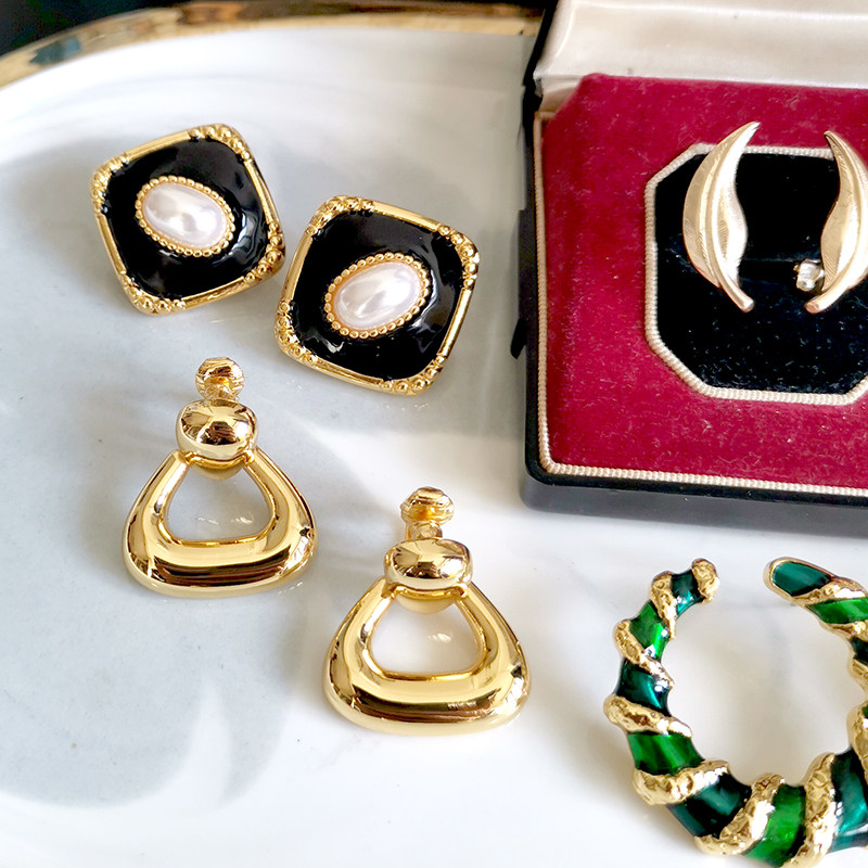 vintage overseas custom vintage modern retro elegant pearl gold plated anti-allergy ear clip 925 ear pin needle