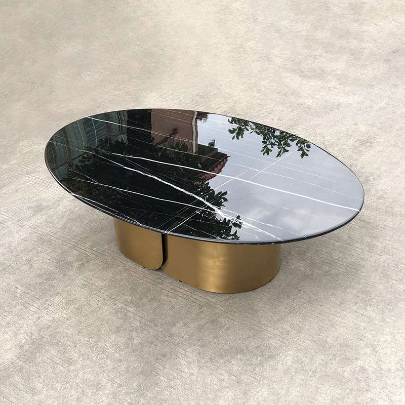 American Light Luxury Round Marble Living Room Tea Several Lauren Black Gold Next Table Stainless Steel Wire Drawing Golden Base