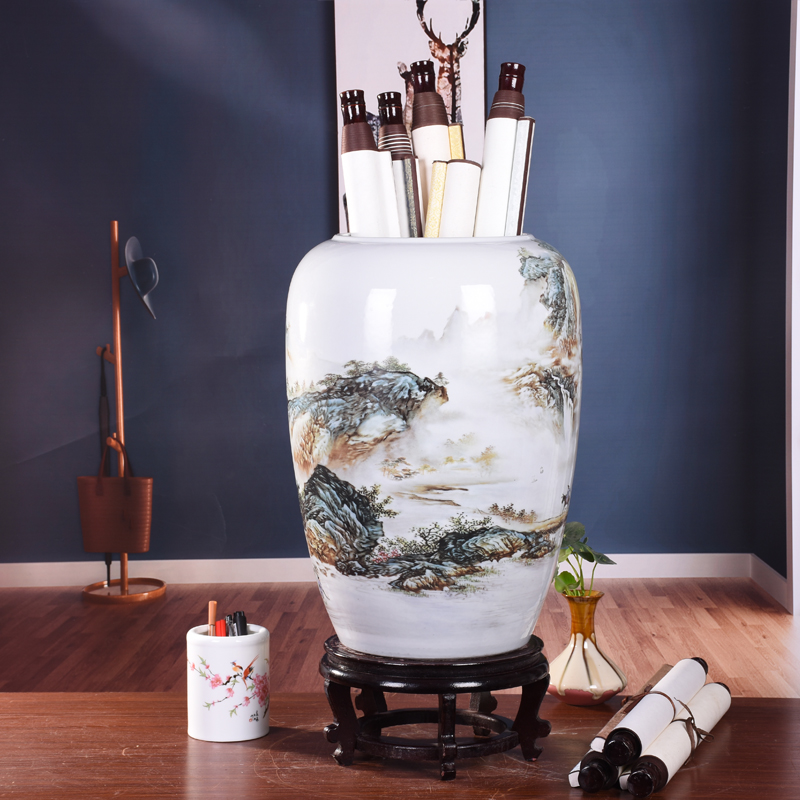 Jingdezhen ceramic painting and calligraphy barrel scroll cylinder calligraphy and painting storage tube floor umbrella barrel study large vase flower arrangement