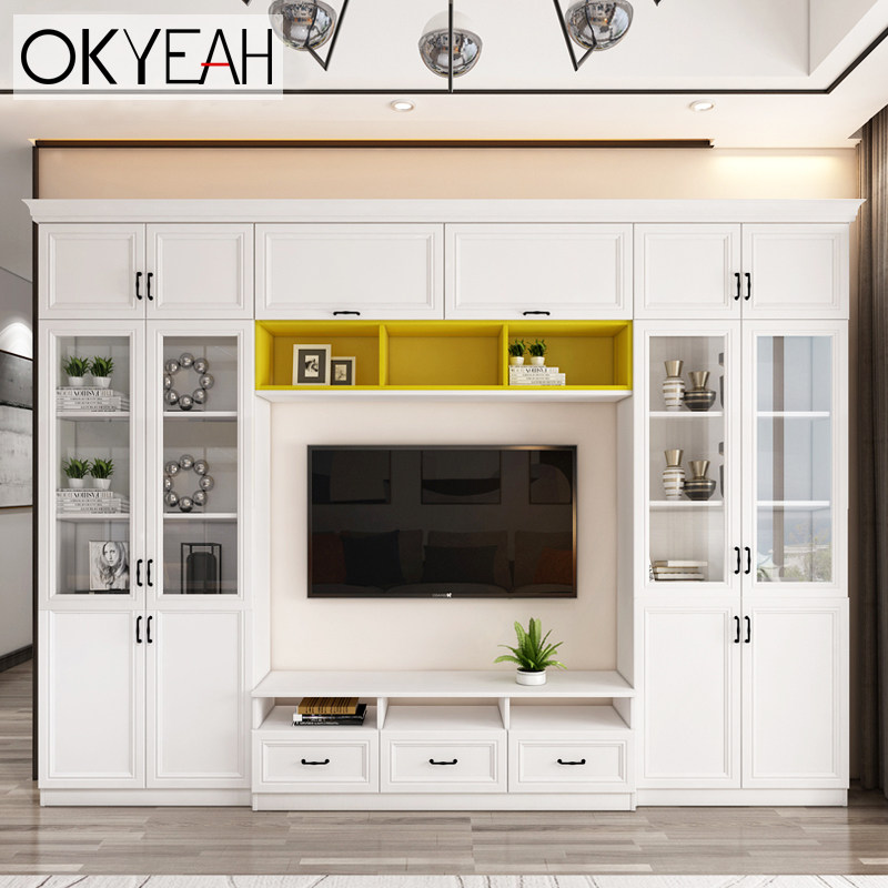 TV cabinet background wall modern simple TV cabinet living room shelf custom integrated TV combination wall cabinet