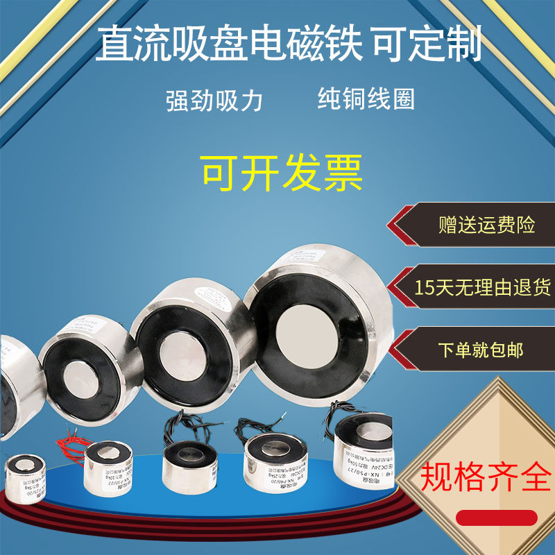 Small cylindrical electromagnet suction strong industrial iron suction DC 24V lifting iron suction iron 12V 50KG electric suction disk