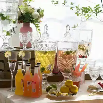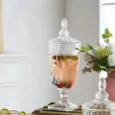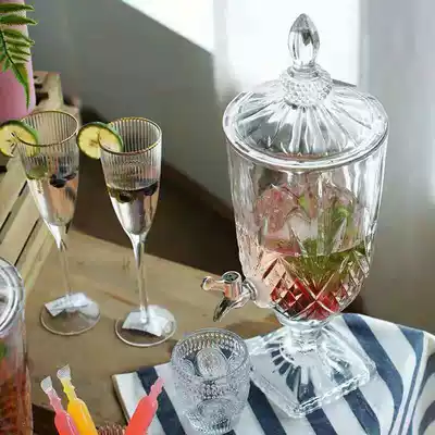 Nordic glass cold water bottle juice beverage with faucet glass Diamond wine bottle large capacity high temperature resistant beverage machine can