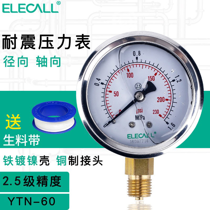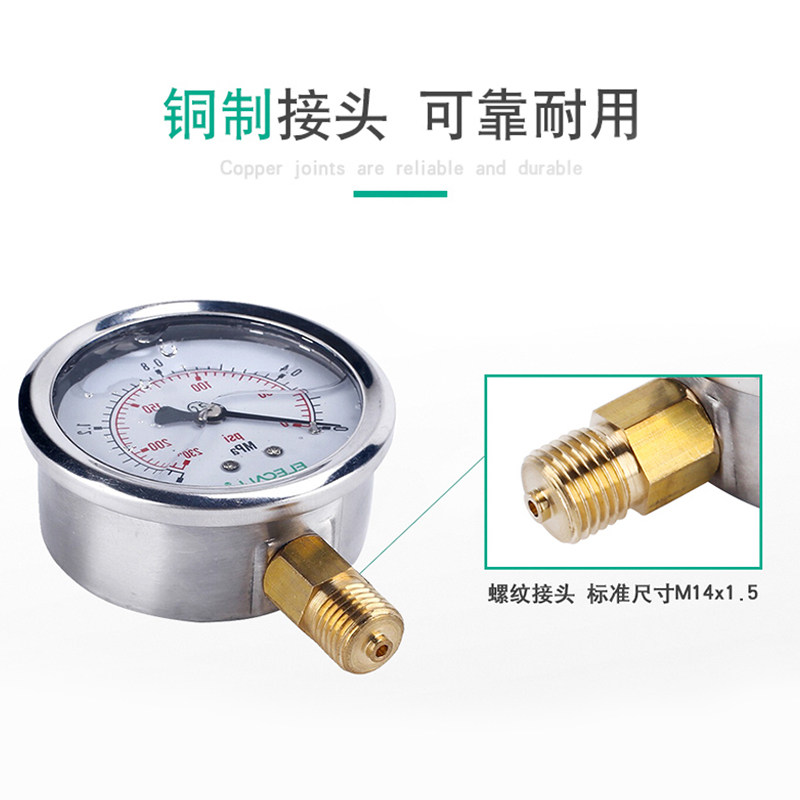 Stainless steel shock resistant pressure meter YTN-60 water pressure gauge hydraulic pressure gauge pressure gauge negative pressure surface water liquid pressure meter