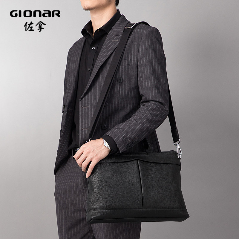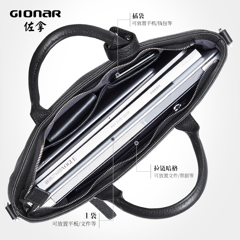 GIONAR small and medium-sized work handbag men's casual style lightweight fashion computer briefcase genuine leather boy trendy
