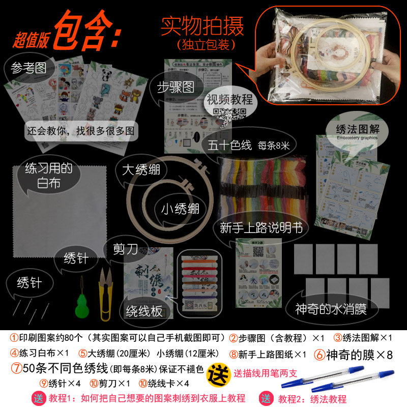 Embroider your own patterns on clothes (material package) DIY embroidery your own patterns (on clothes) super value version