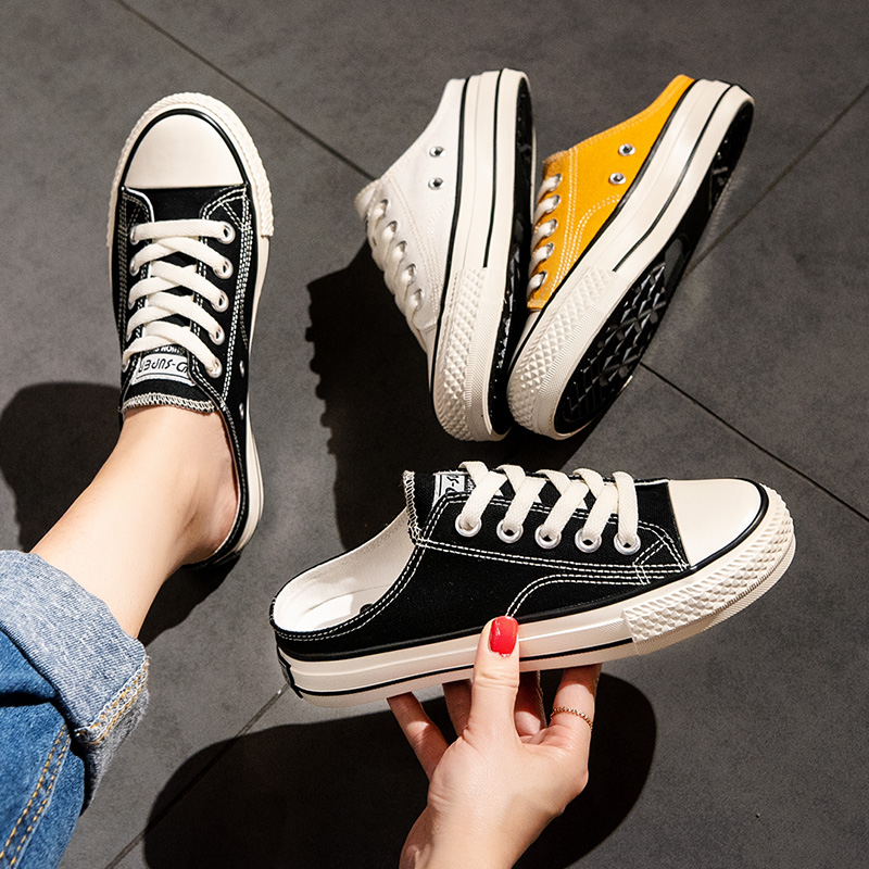 Summer thin breathable half-slip canvas shoes women's shoes summer sneakers 2022 new ins tide all-match sneakers