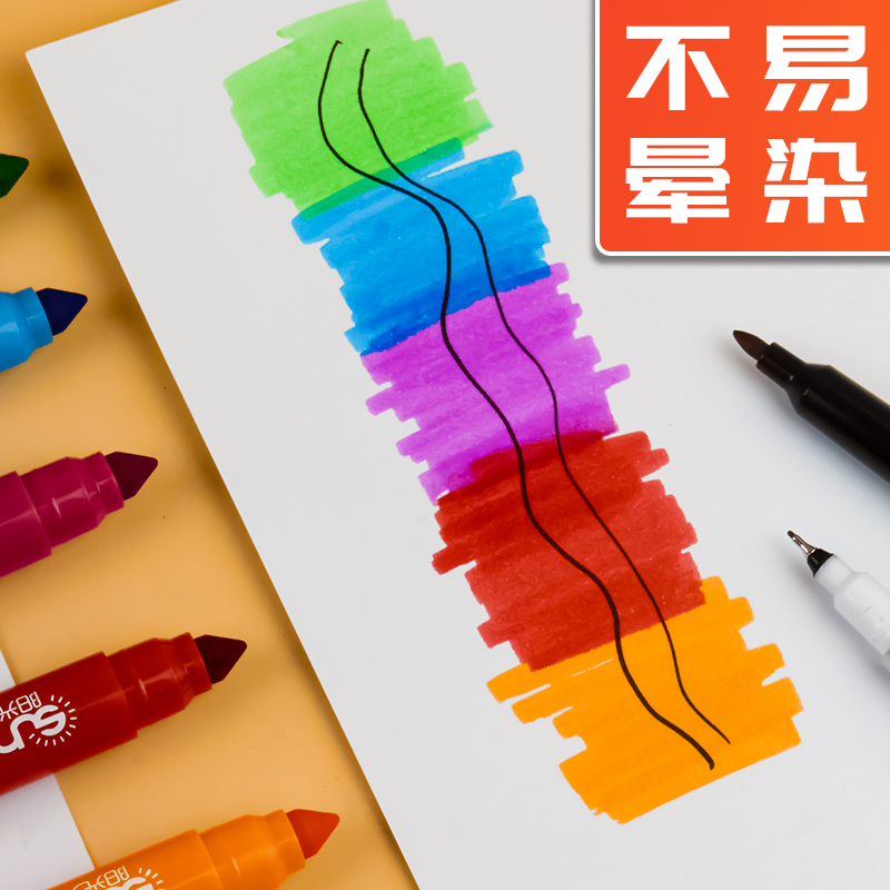 Sunshine Angel small double-headed oily marker pen black odorless kindergarten painting fine pen hook line pen waterproof
