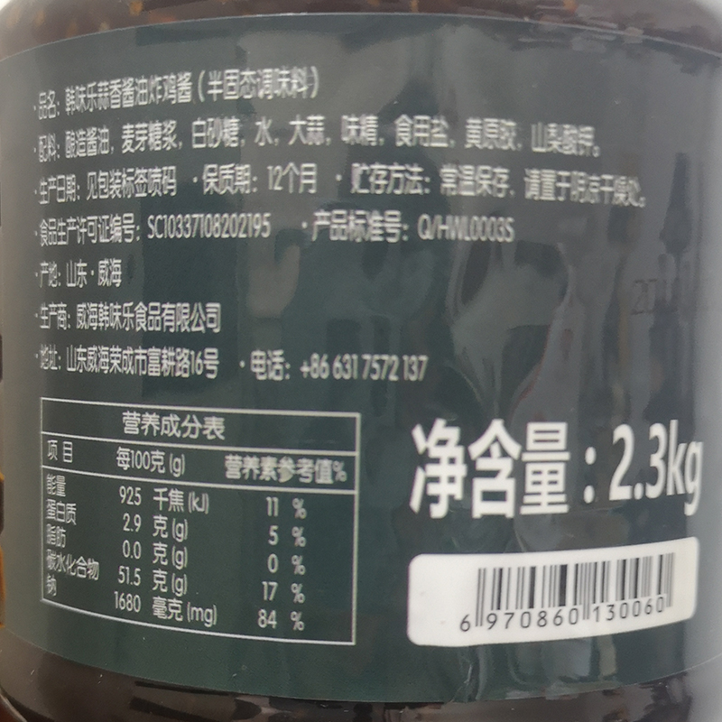 Hanweile Garlic soy sauce Fried chicken sauce 2 3kg Korean fried chicken sauce Korean fried chicken commercial jam dip sauce