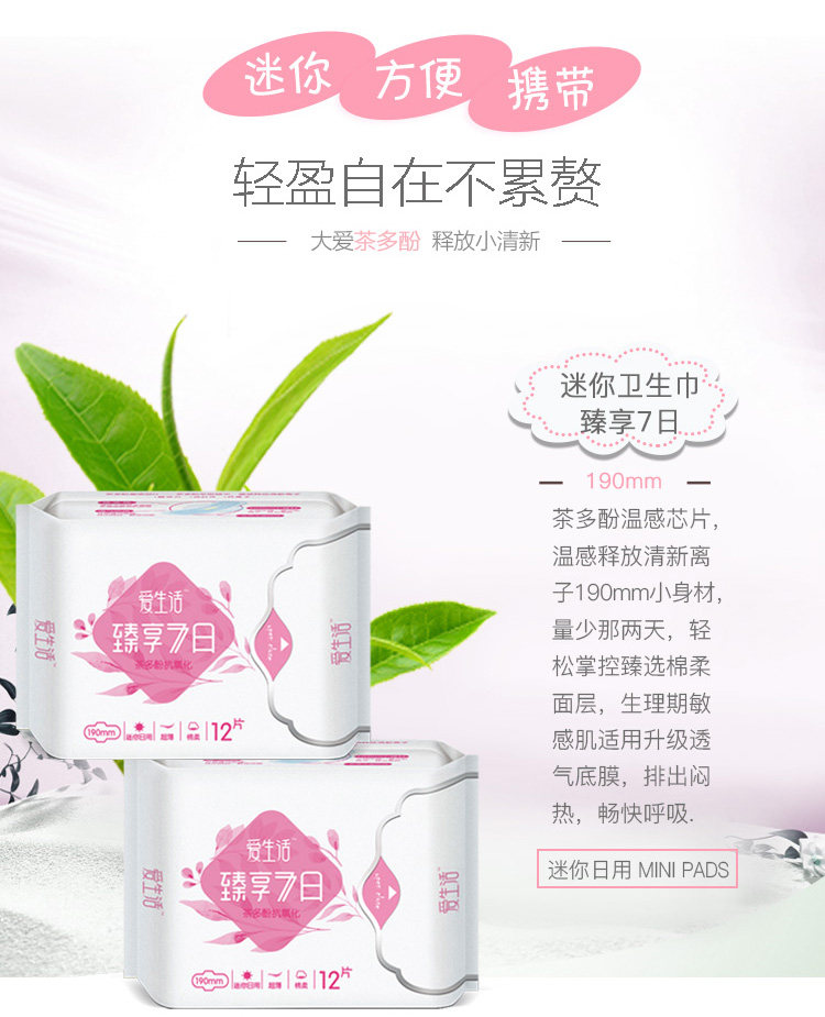 Green leaf to enjoy 7th ultra-thin breathable mini daily cotton flexo 12 slices sanitary cotton tea polyphenols students