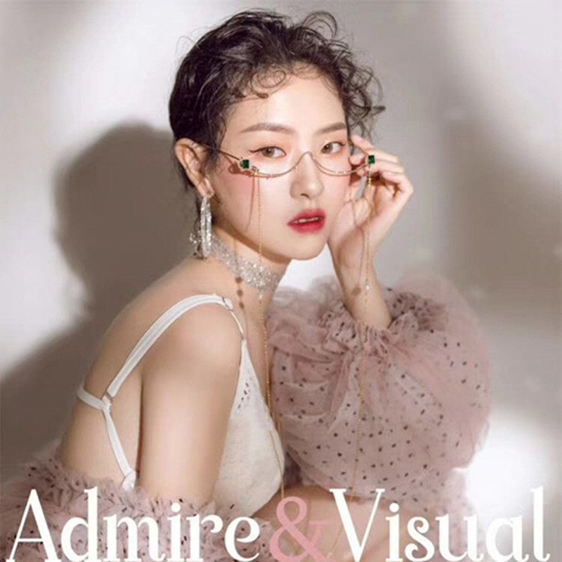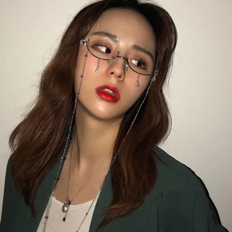 New Photo Gallery Photography Personality Writing Real Photo Props Online Red Same-day Ensemble No Lens Metal Glasses Ins Chain