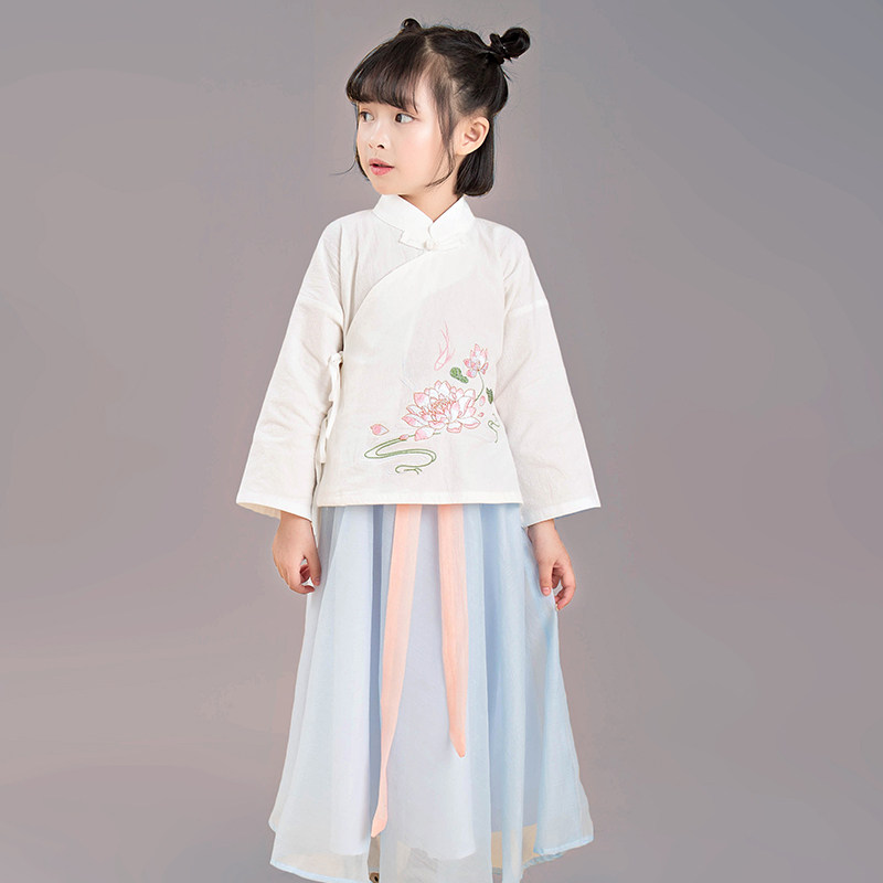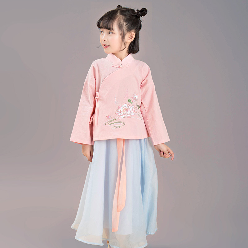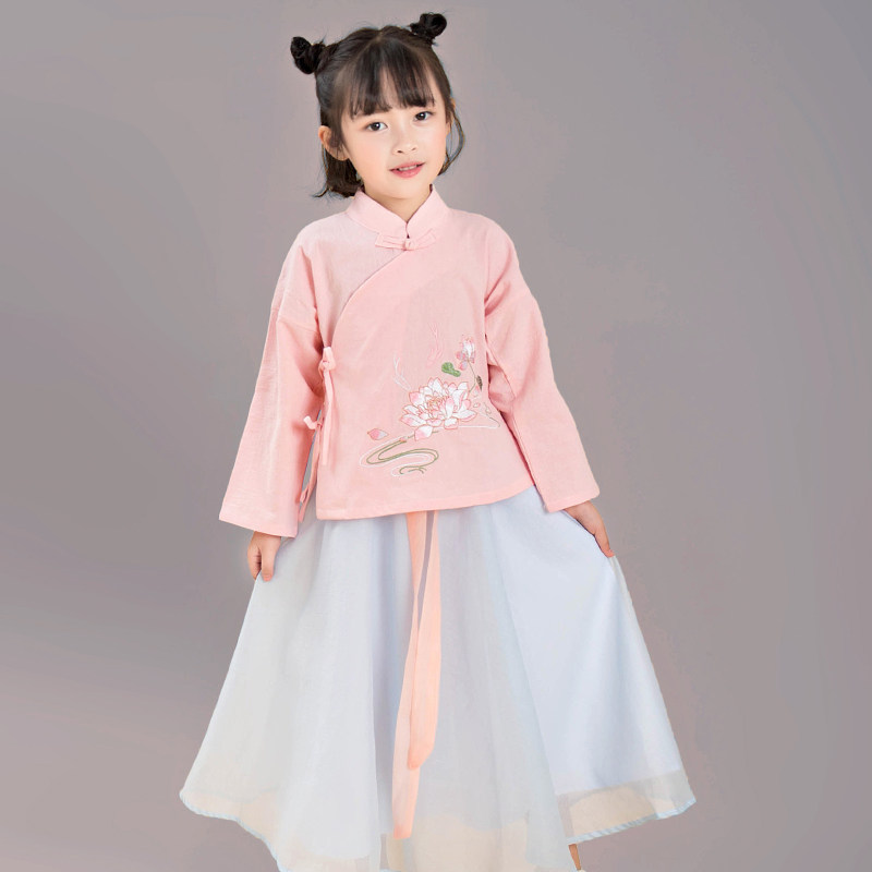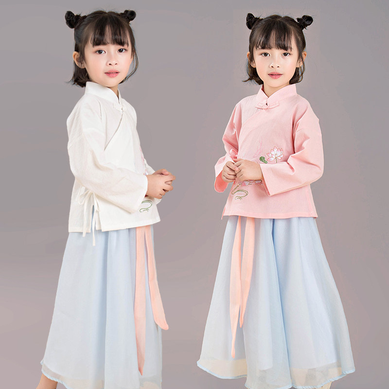 Hanfu Girls Chinese Wind Baby Tang Suit Spring and Autumn Improved Republic of China Ancient Costume Children Confucian Skirt Super Fairy Little Girl Set**