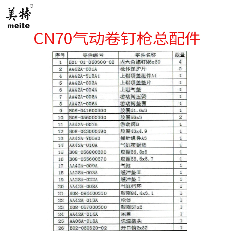 01 Hexagon socket head cap screw M6*30 (1 piece) 08 Swimming valve ring gasket 16 Rubber ring 55 6*5 718 Buffer pad Ⅱ02 Gun body protection sheet (1 piece) 09