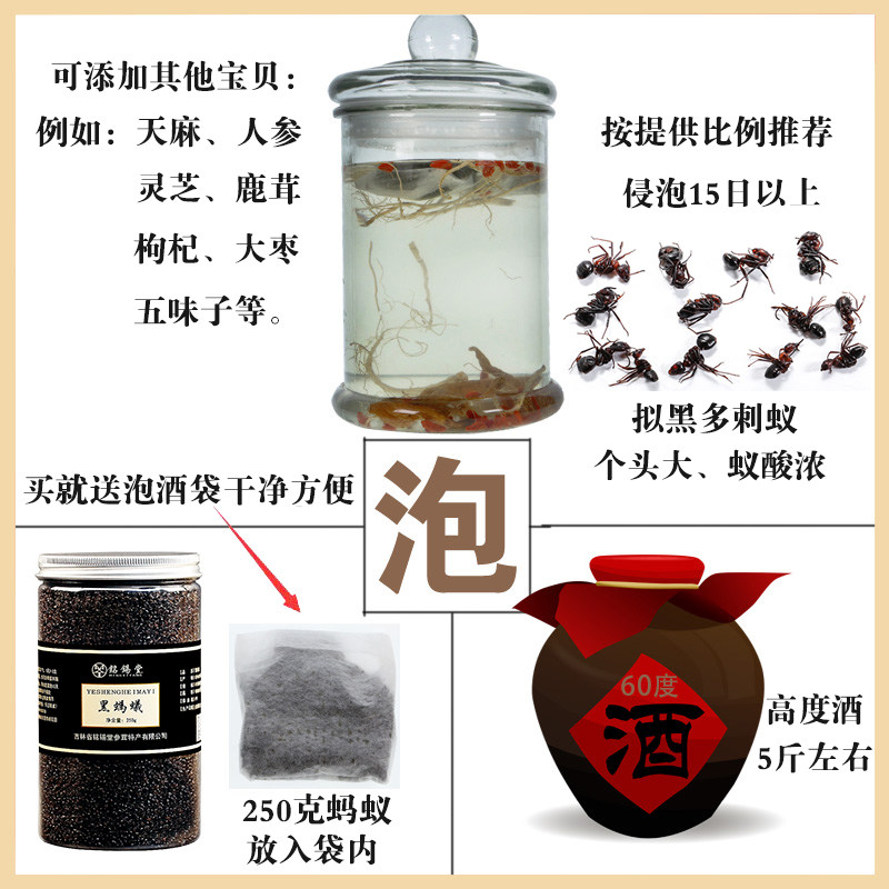 Black ant dried wild changbai mountain ant pseudo black multi-spiny ant 500g health bubble wine material large ant acid black ant powder