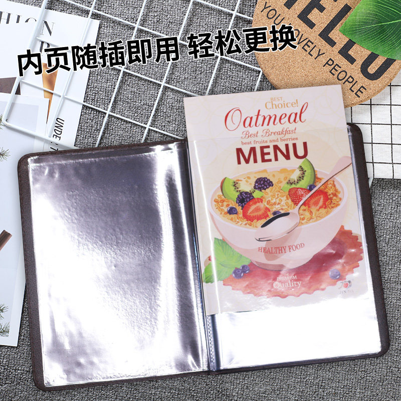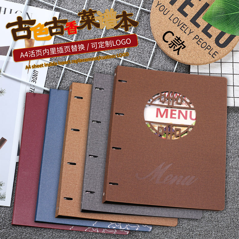 Transparent recipe book vintage Chinese style A4 price list price loose-leaf book Hotel dining room PVC soft film A la carte clip ordering menu book insert binder high-grade leather cover shell customization