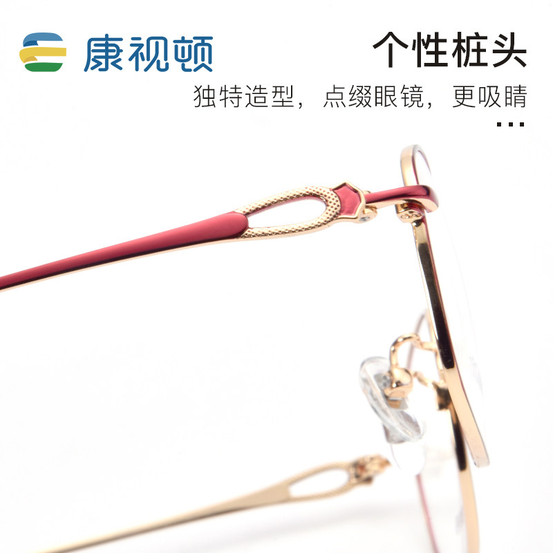 New Conviewing ton Eye frames women's round frame ultralight pure titanium gold red myopia glasses elegance full frame F66021