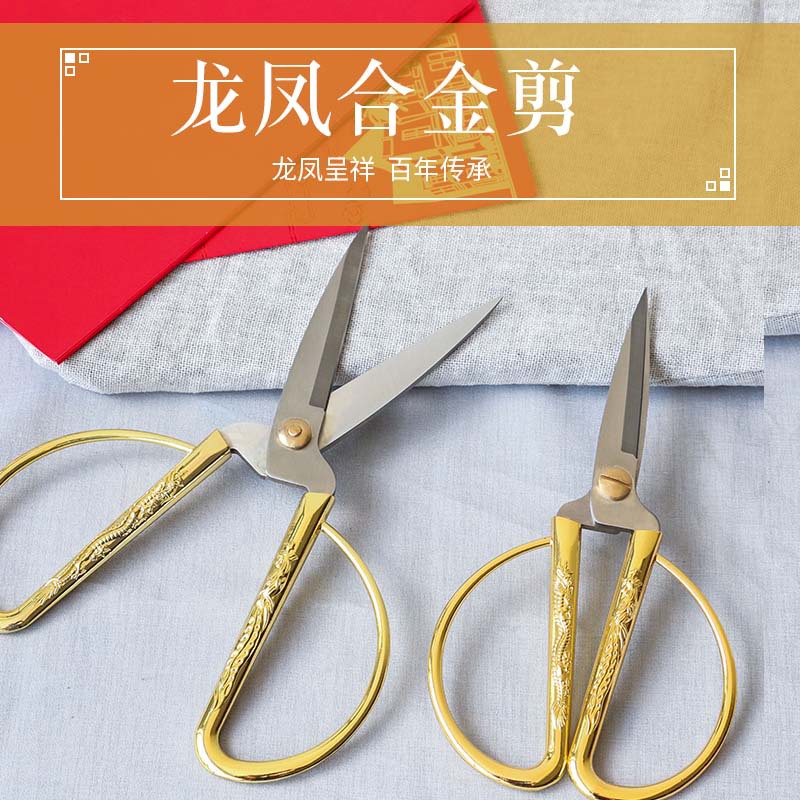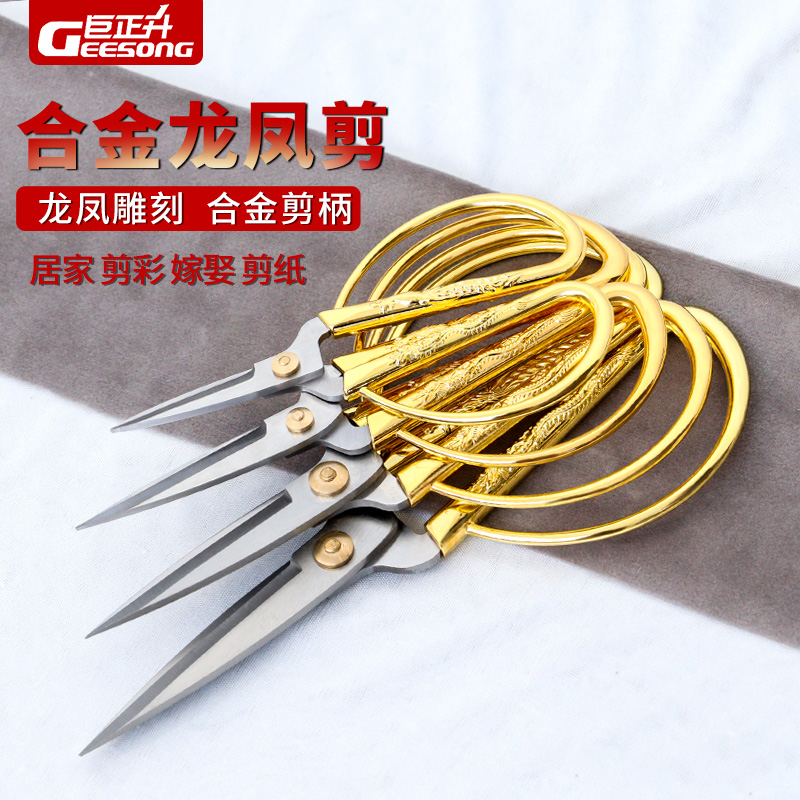 Dragon and Phoenix alloy scissors new opening ribbon-cutting suit wedding dowry gold scissors set dragon and phoenix nail scissors