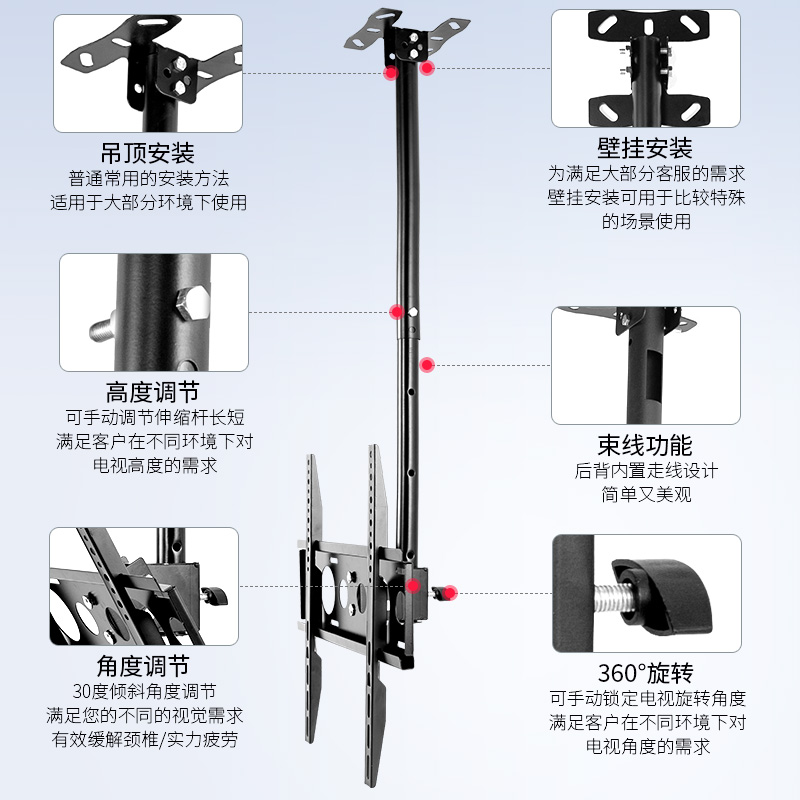 Universal TV Hanger Ceiling ceiling bracket Telescopic swivel hanging hanging double screen hoisting wall-hanging frame