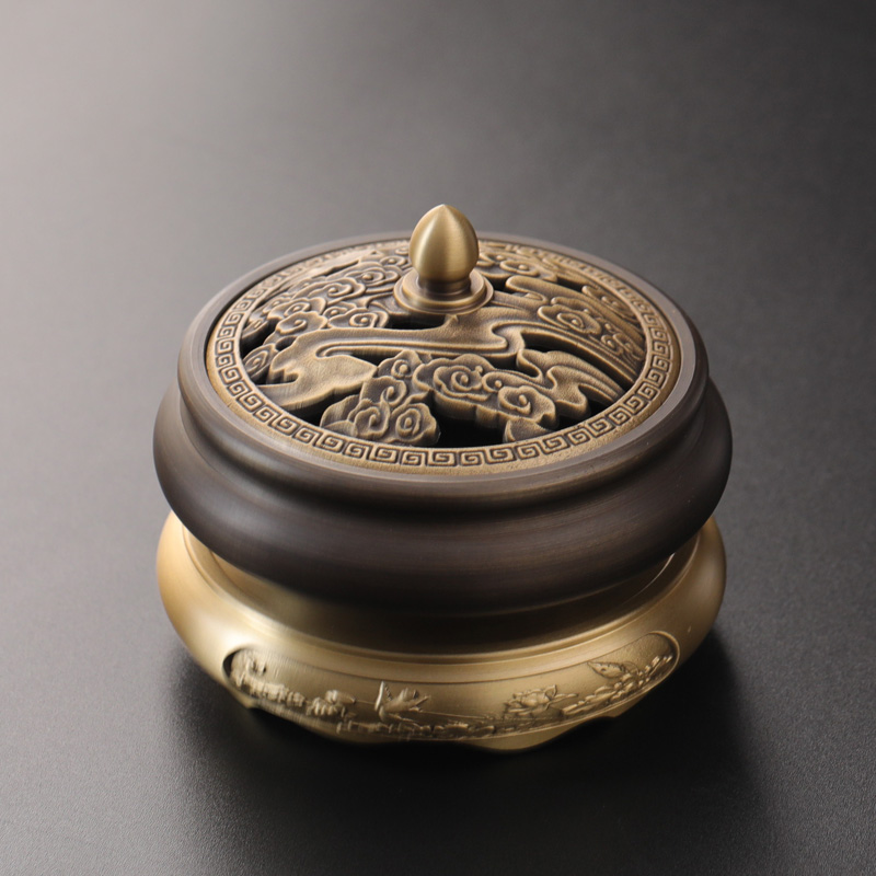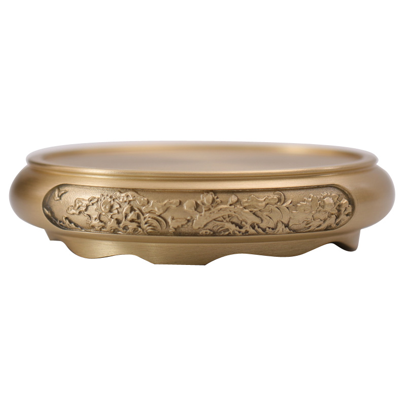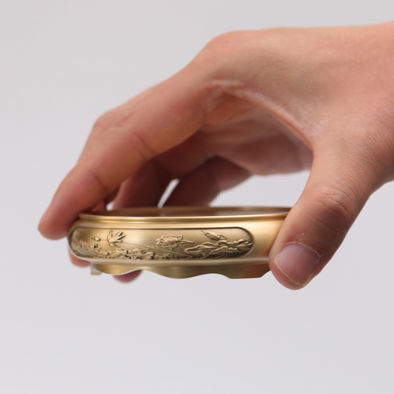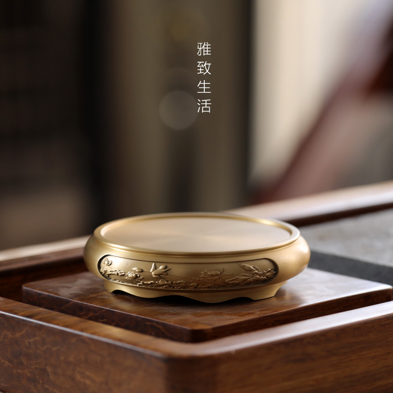 Gongdefang pure copper incense burner round base Household teapot holder relief incense burner seat Craft gift decoration Tea ceremony ornaments