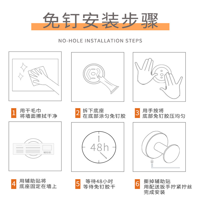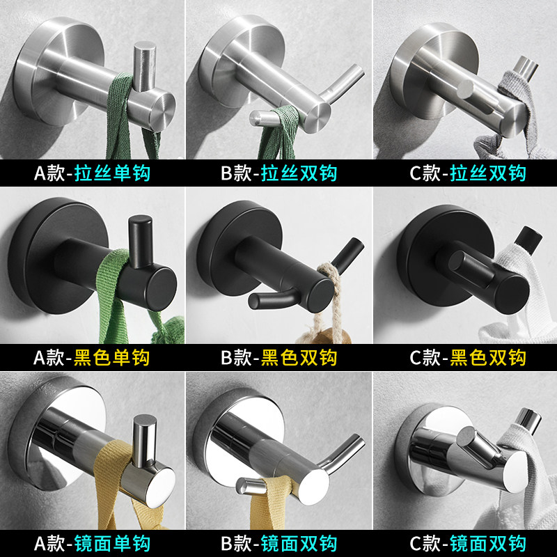 304 Stainless Steel Black Hook Single Wall Wall-mounted Hood Hook Bathroom Makeup Room Genguan Creative Hanging Hook
